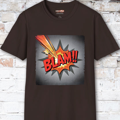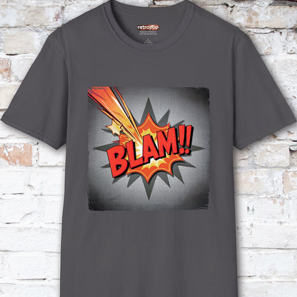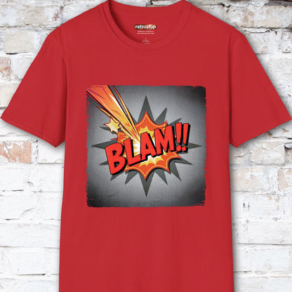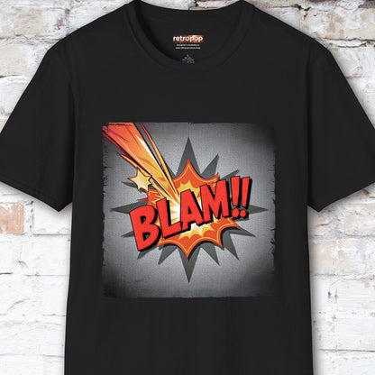 Add a punch of pop art to your wardrobe with this explosive BLAM!! T-shirt from Retro Pop Culture. Inspired by vintage comic book action panels, this bold design delivers retro vibes with a bang—perfect for fans of classic comics, graphic art, and all things loud and fun.